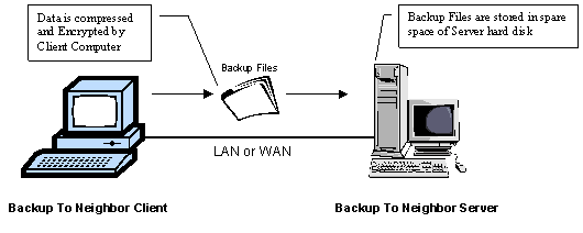 Backup To Neighbor can be configured to many different scenarios. For example, dedicated server, peer-to-peer mode, rotation backup, backup within LAN or across WAN.