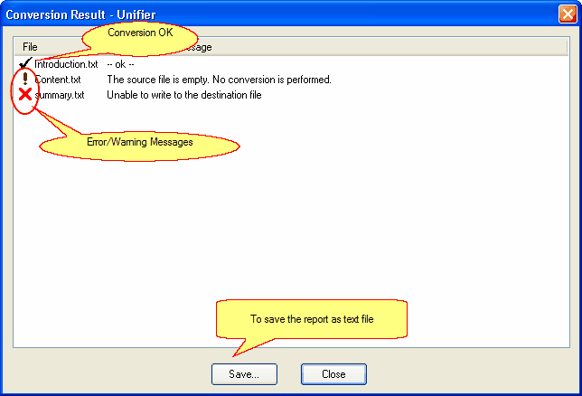 After conversion, a summary report will be displayed. You may also save the report as text file for future reference.