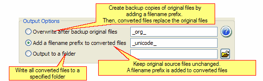 You may control how Unifier stores backup and converted files using Output Options.